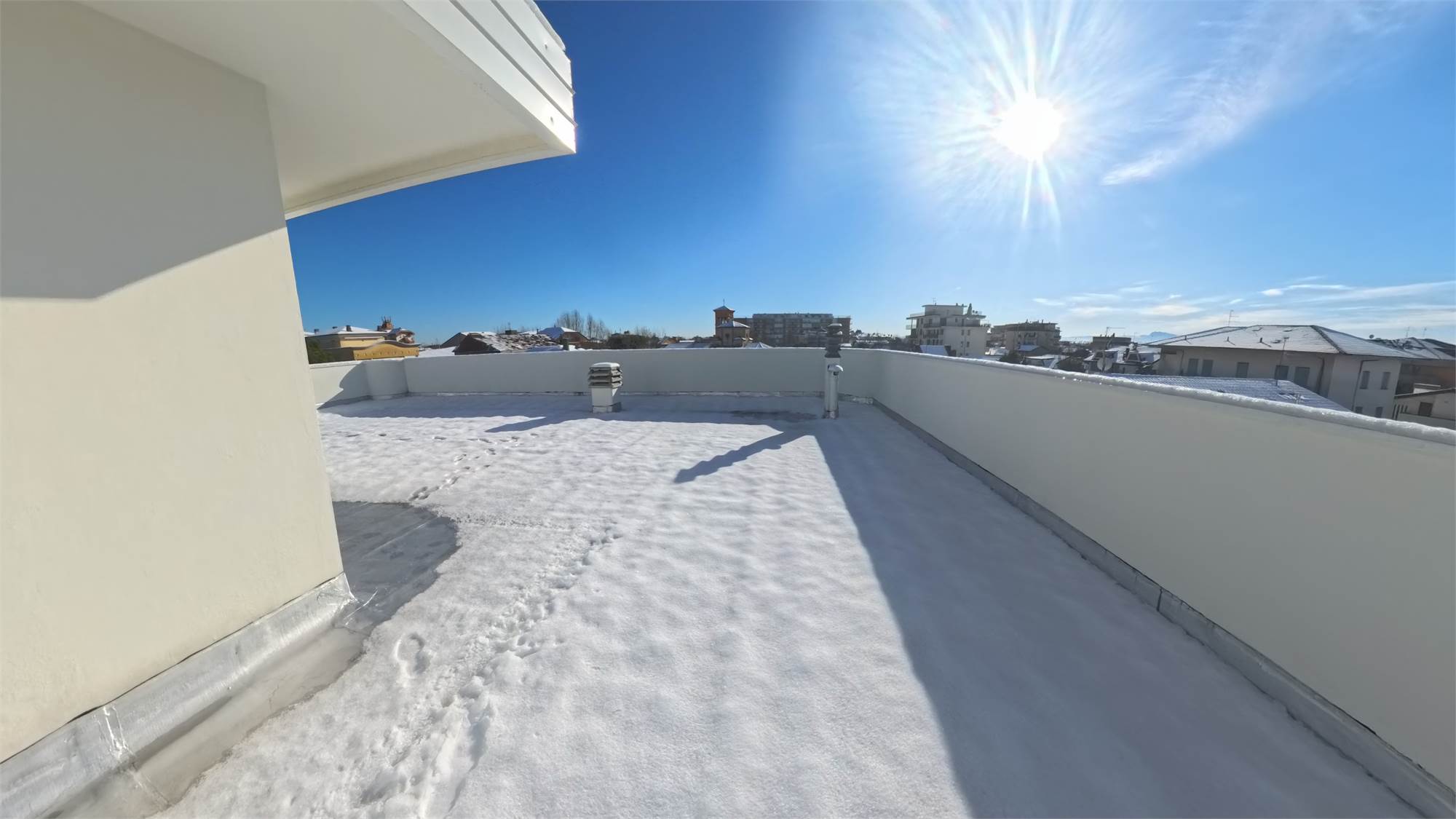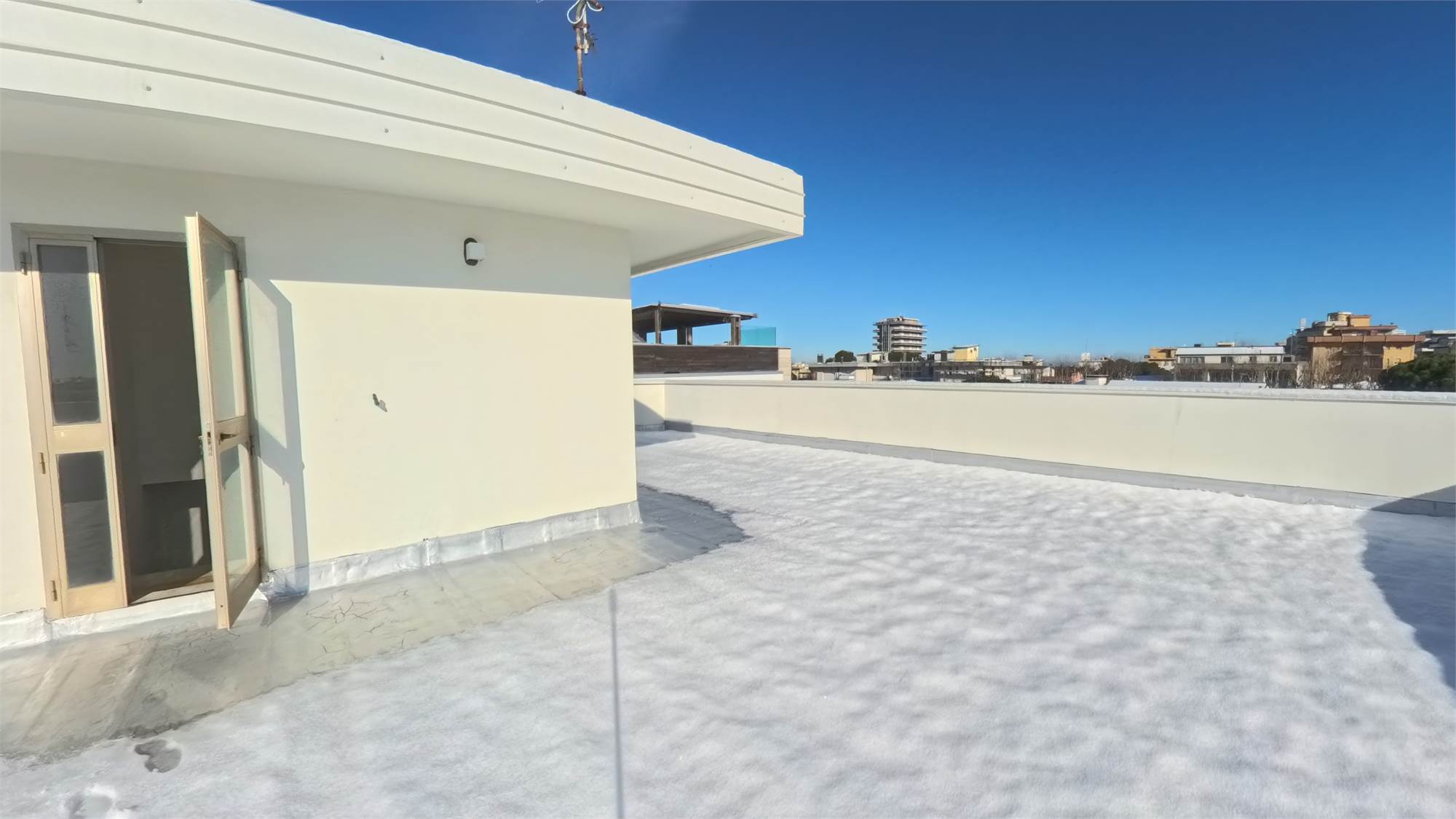 L’appartamento è composto da ingresso, ampia cucina abitabile, soggiorno, due camere da letto con possibilità di realizzare un secondo bagno, un bagno finestrato e balcone panoramico perimetrale.