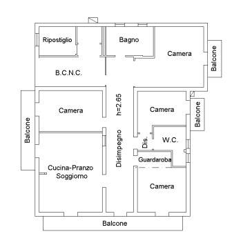 L'immobile è composto da un luminoso ed ampio salone di circa 30 mq, quattro camere , due bagni , disimpegno, due ripostigli , una cantinola e tre posti auto .